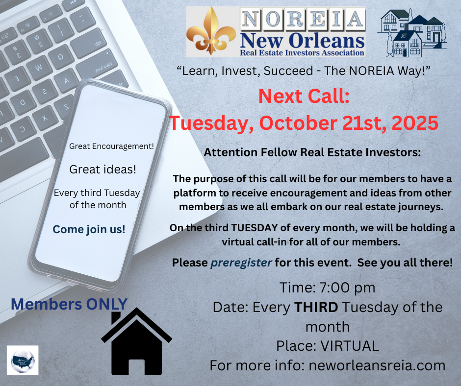 The purpose of this call will be for our community to have a platform to receive encouragement and ideas from other members as we all embark on our real estate journeys.